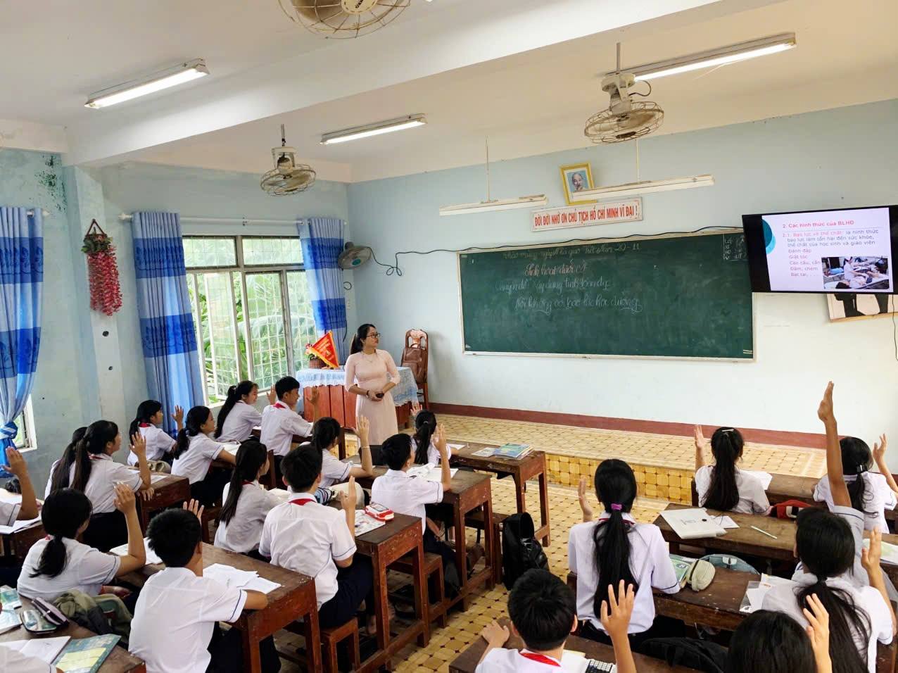Thông qua buổi sinh hoạt, các bạn học sinh được cùng nhau trao đổi, thảo luận, xem các tiểu phẩm, tình huống thực tế để hiểu sâu sắc hơn giá trị của tình bạn, từ đó hình thành thái độ sống tích cực, xây dựng môi trường học đường an toàn, thân thiện, không có bạo lực.