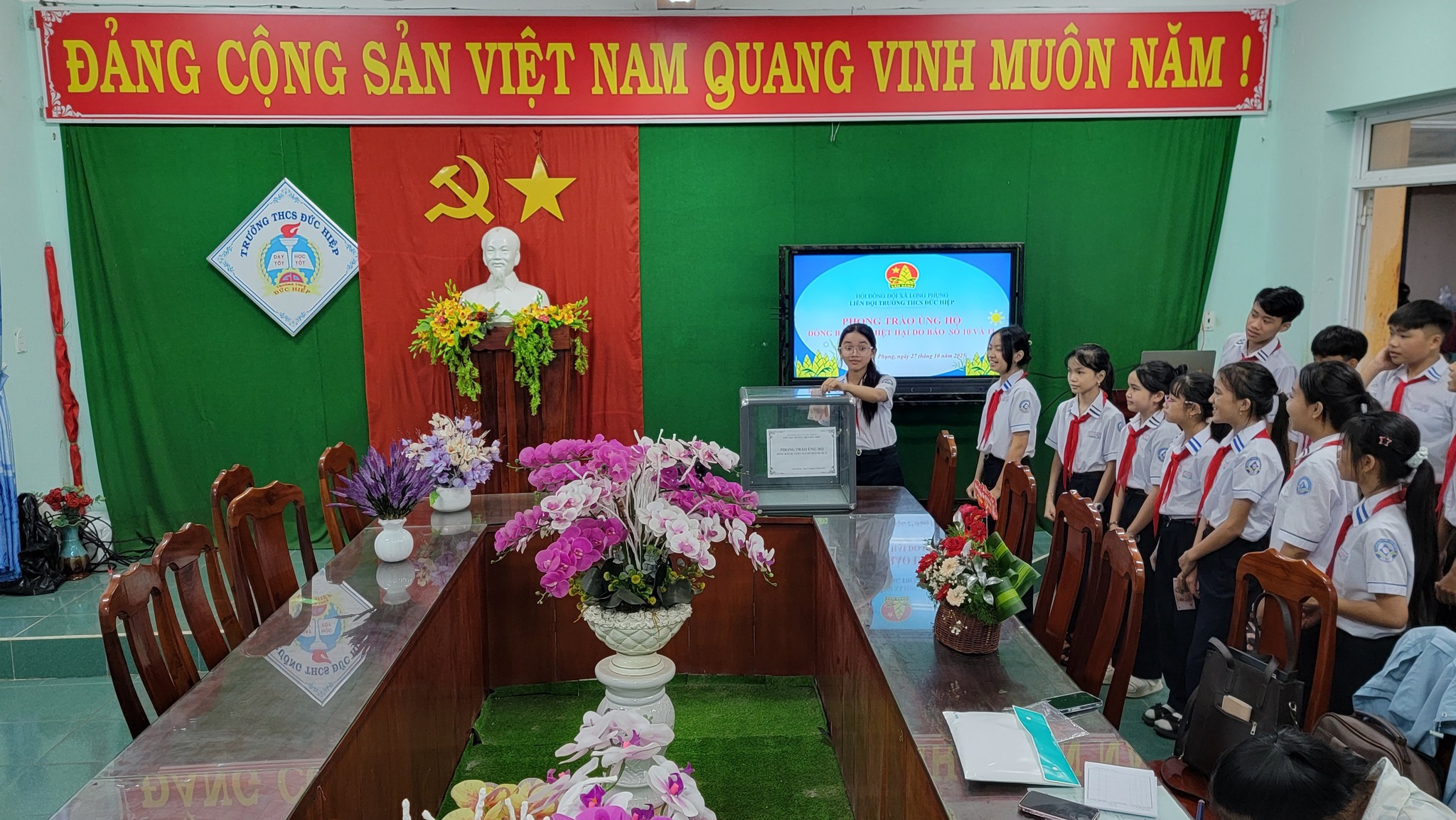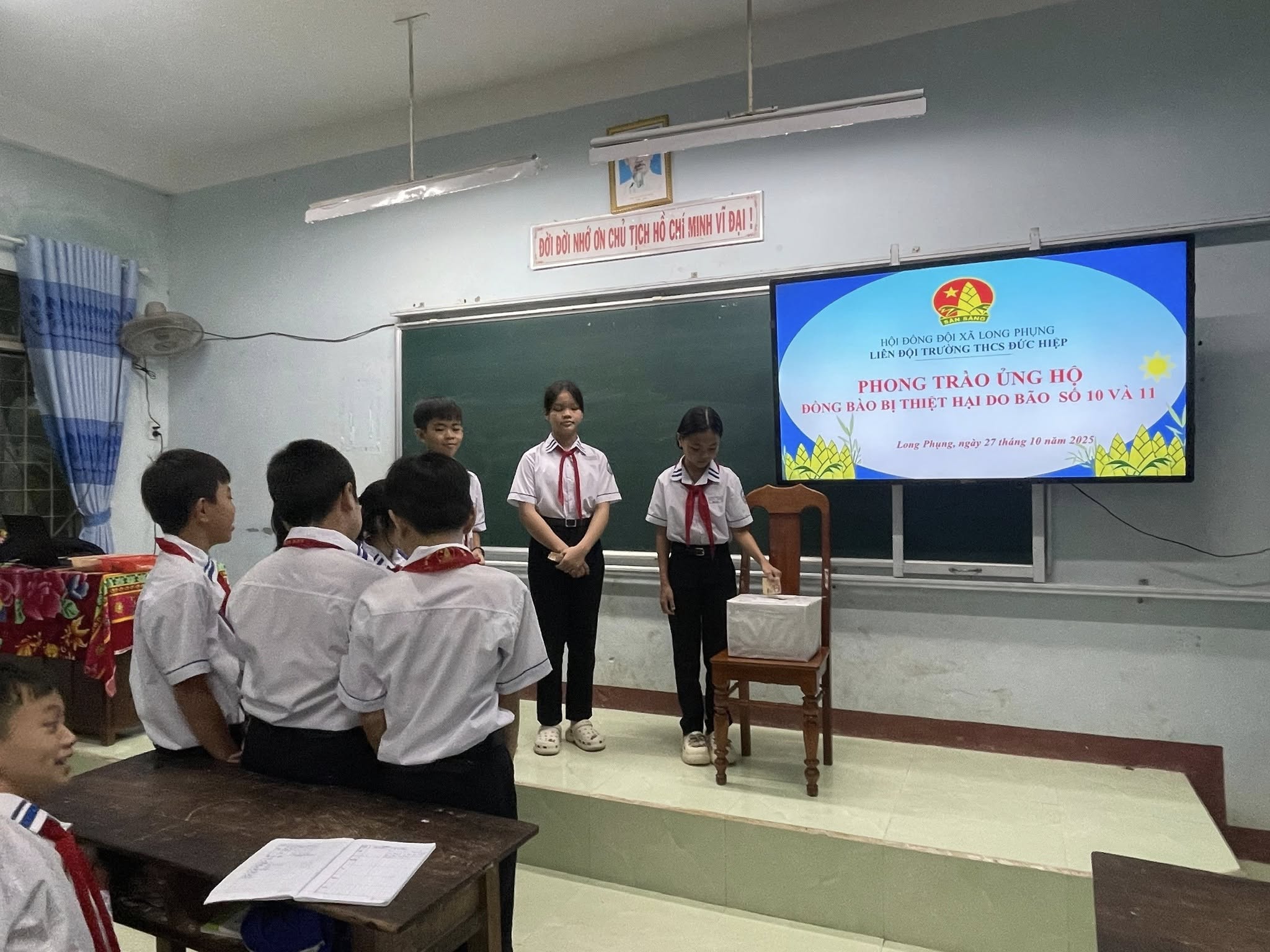Số tiền trên đã được Liên đội tổng hợp và gửi về Ủy ban Mặt trận Tổ quốc Việt Nam để kịp thời chuyển tới đồng bào vùng bị thiên tai, thể hiện tinh thần “Tương thân tương ái – Lá lành đùm lá rách” của thầy và trò Trường THCS Đức Hiệp.