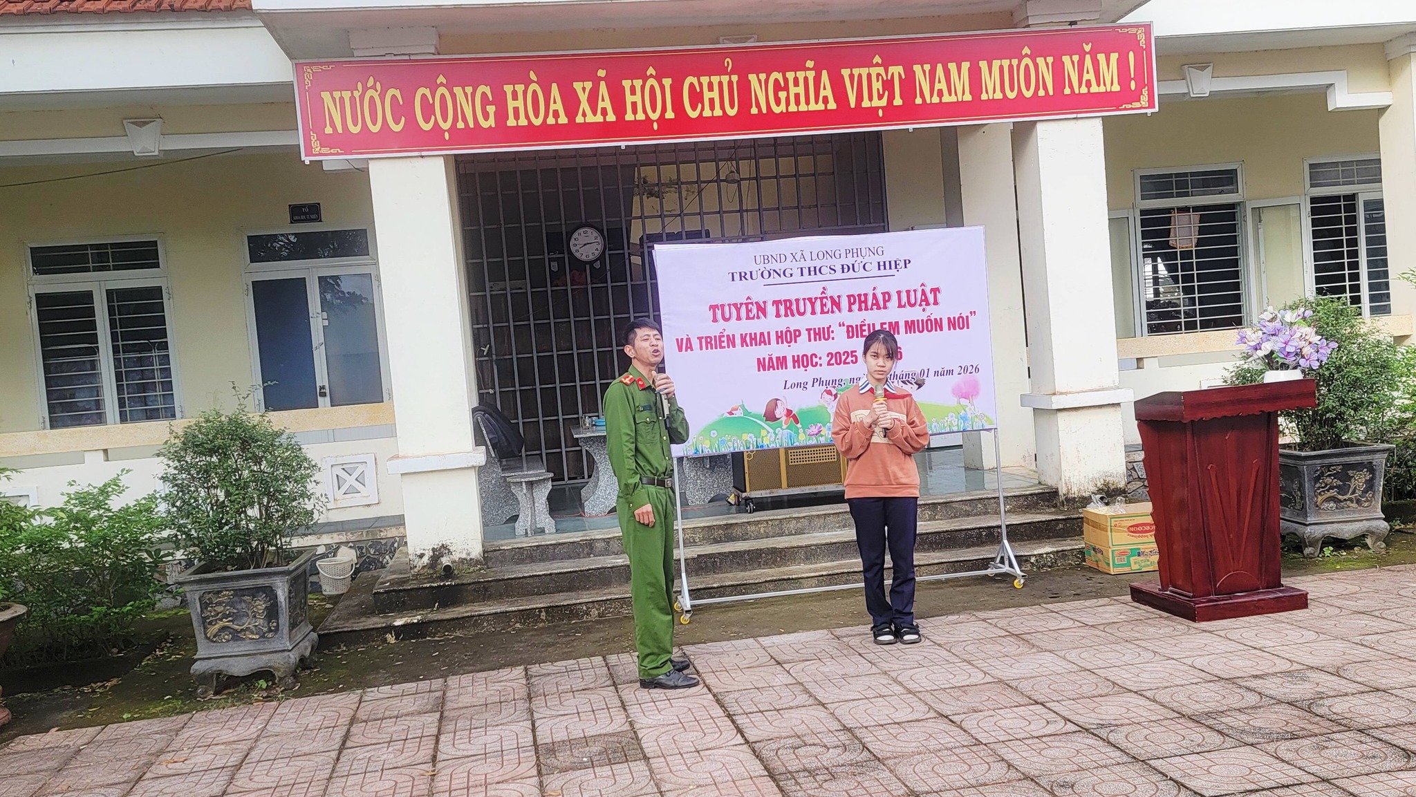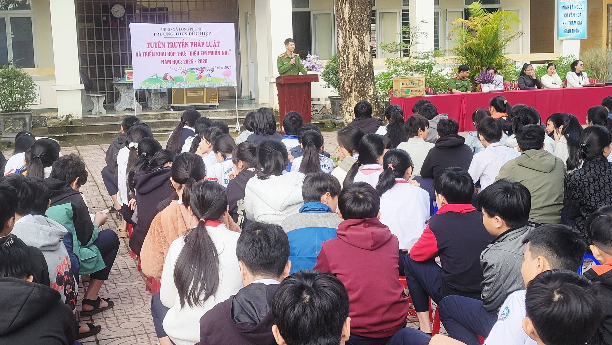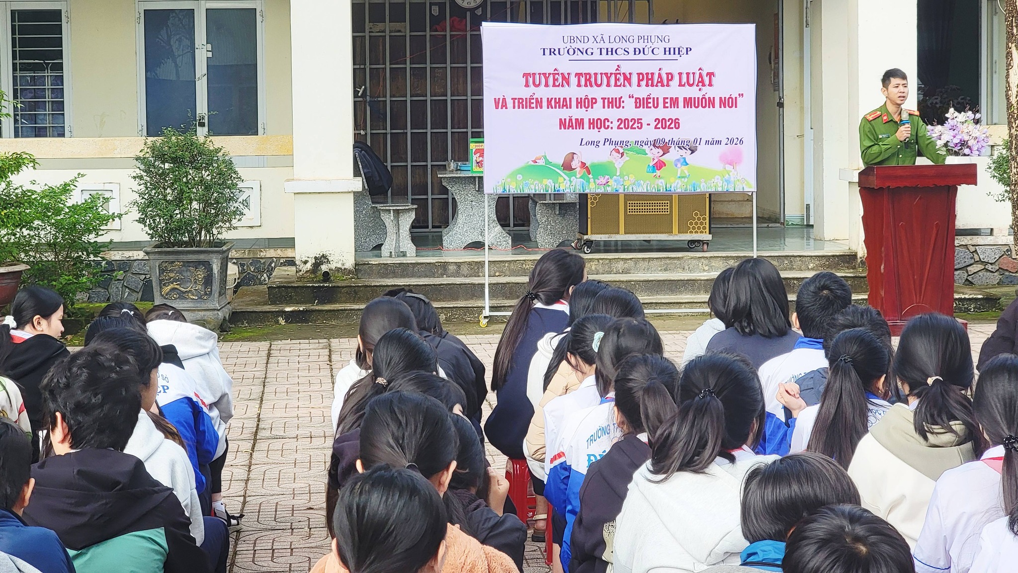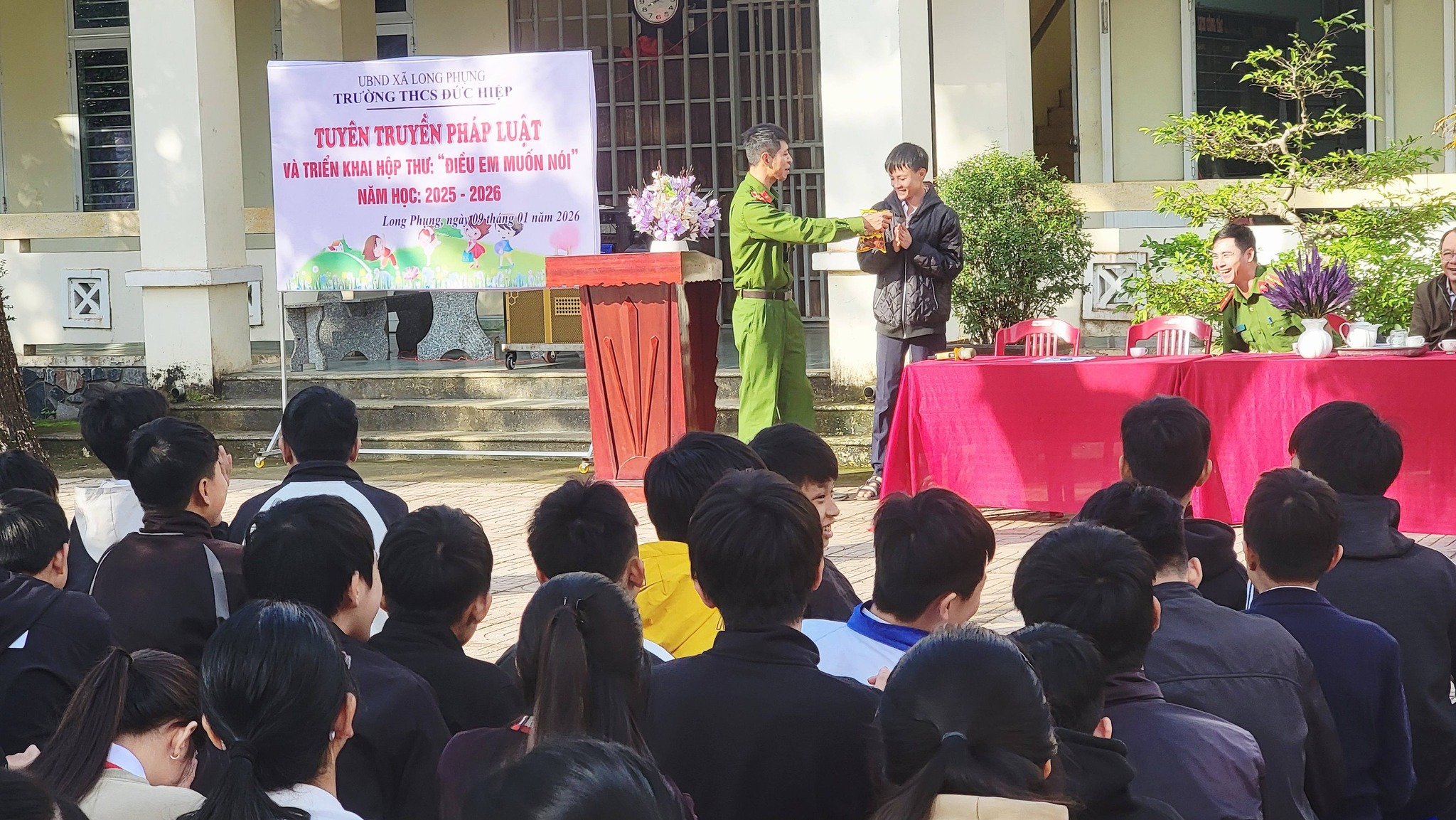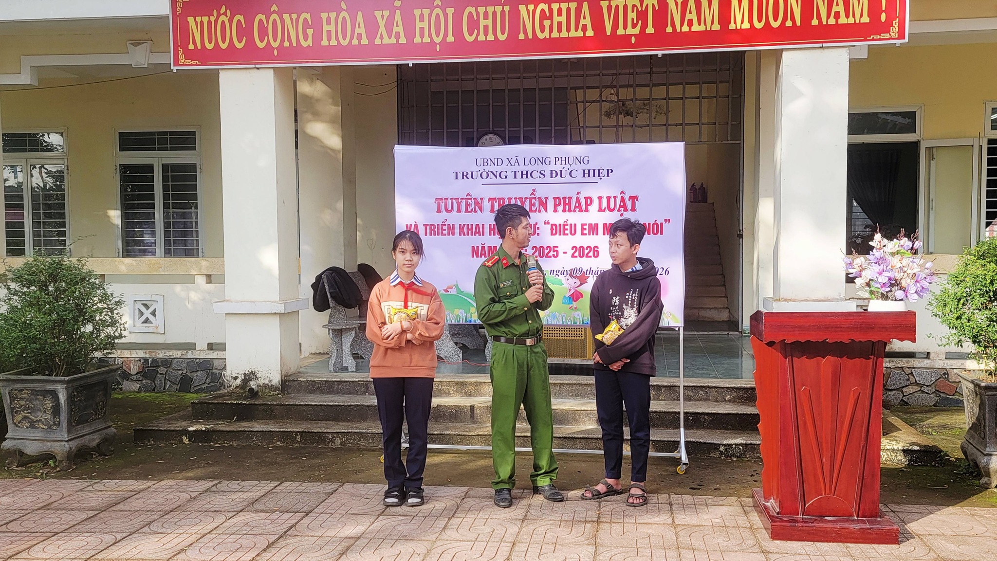 Sáng nay, ngày 09/01/2026. Trường THCS Đức Hiệp tổ chức buổi tuyên truyền pháp luật nhằm trang bị cho các em những kiến thức cần thiết trong học tập và cuộc sống.