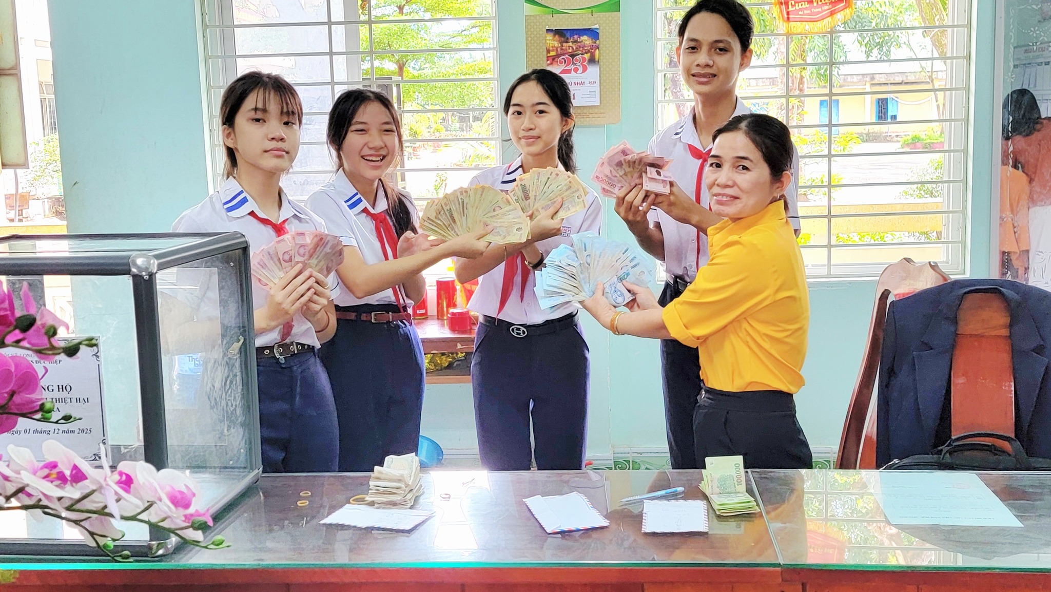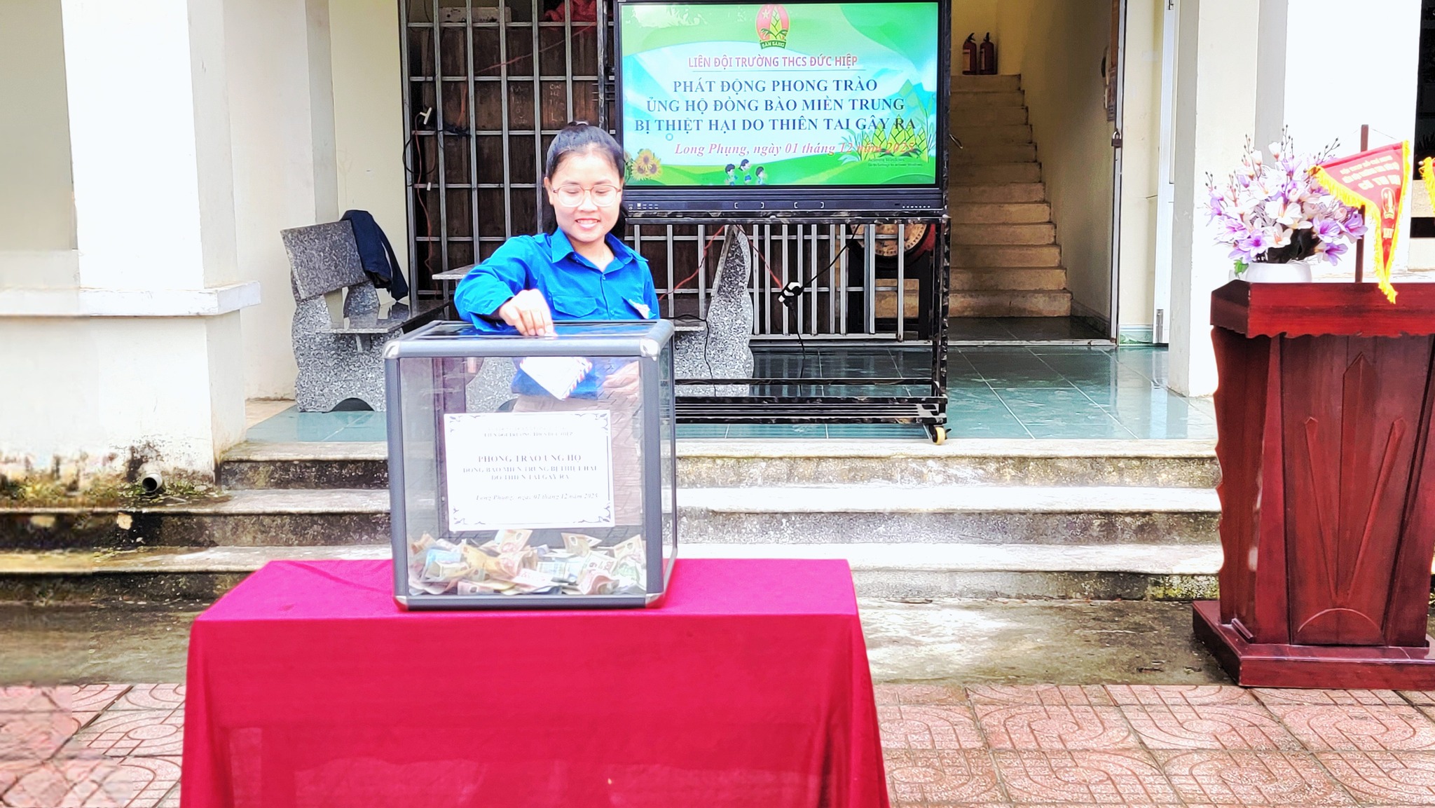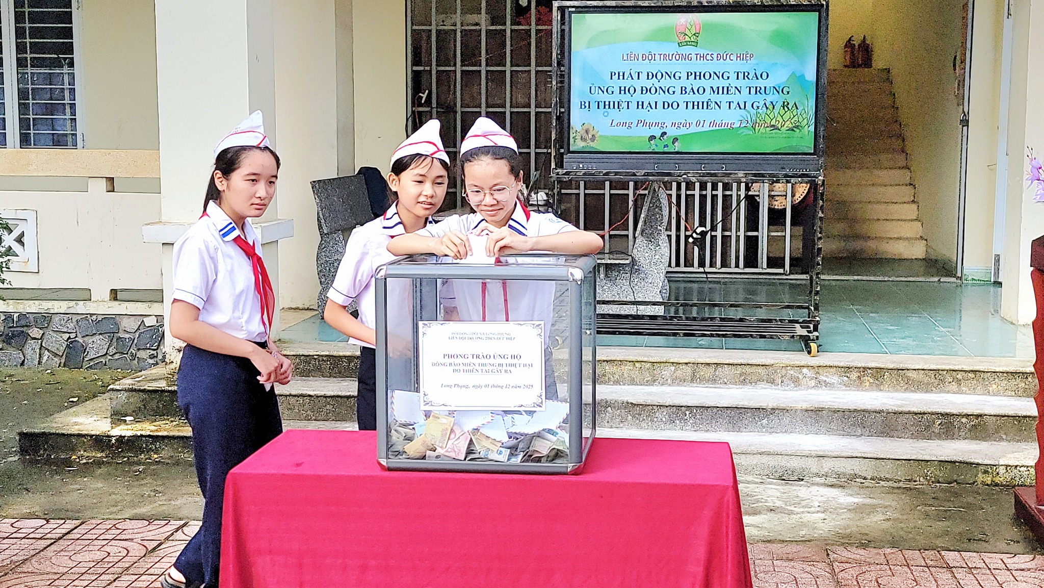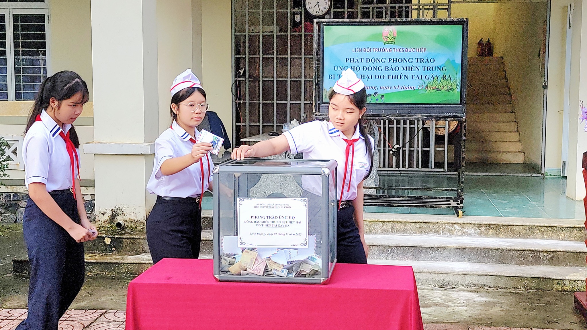 Kết thúc buổi quyên góp, toàn trường đã ủng hộ được 12.305.000 đồng. Đây là con số thể hiện rõ tinh thần đoàn kết và nghĩa cử cao đẹp của CBGVNV, phụ huynh và học sinh trường THCS Đức Hiệp. Số tiền này sẽ được Liên đội chuyển đến Ủy ban MTTQ để kịp thời hỗ trợ các gia đình đang gặp khó khăn, giúp họ sớm vượt qua hoạn nạn và ổn định cuộc sống.