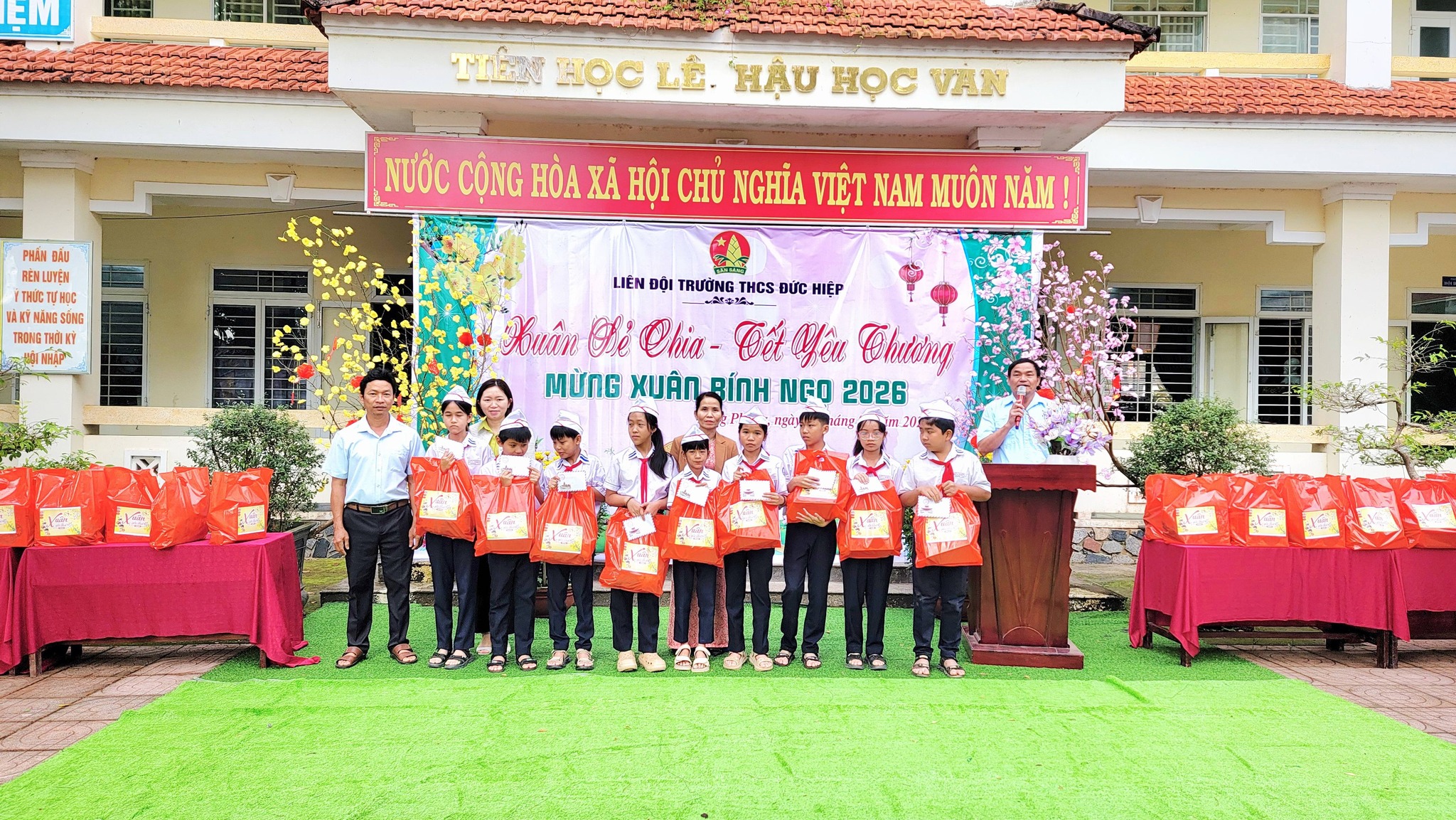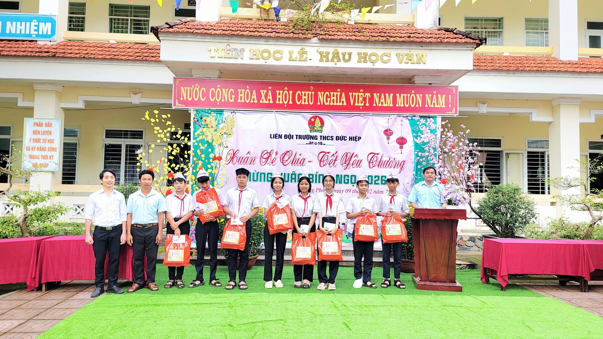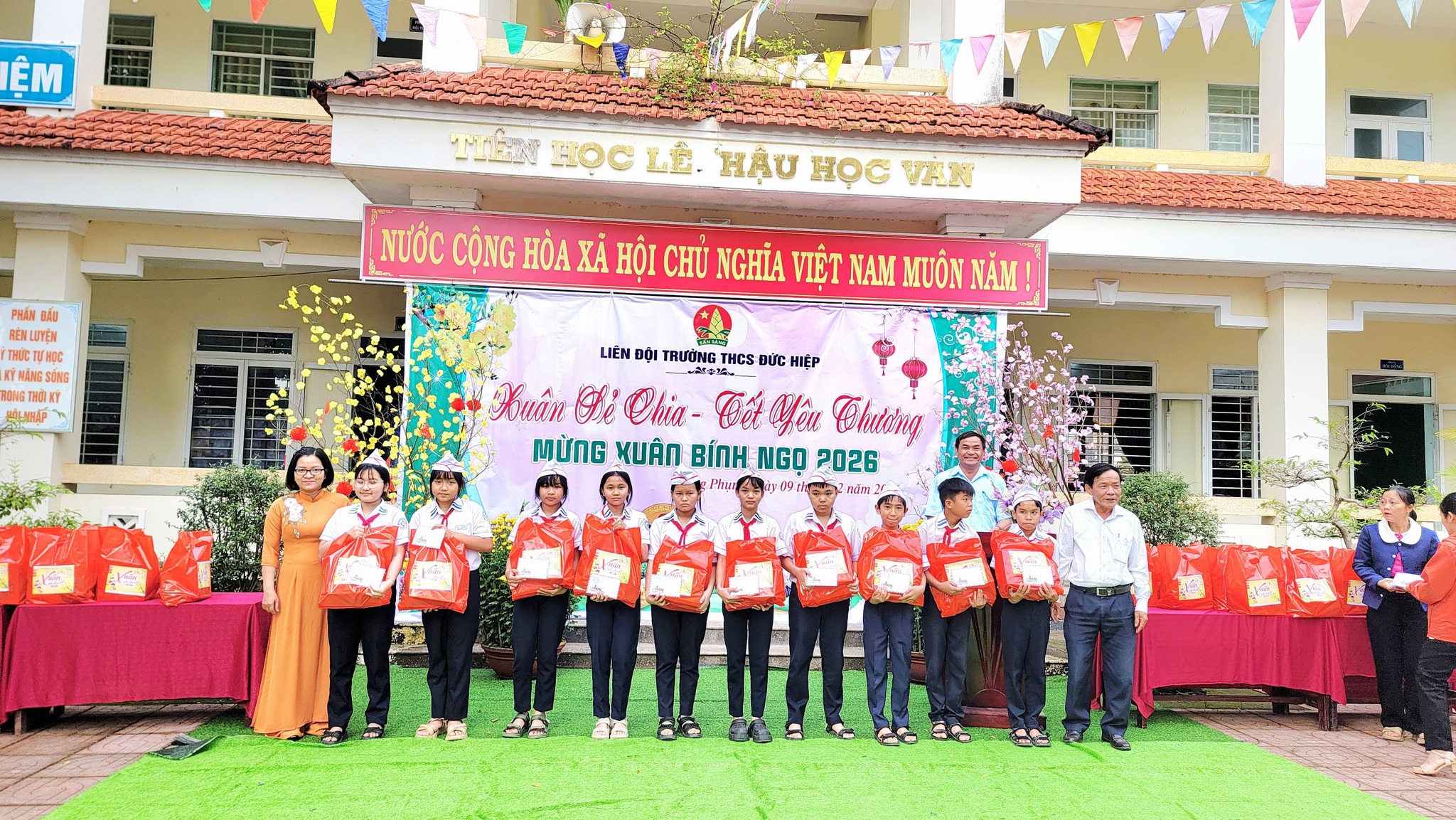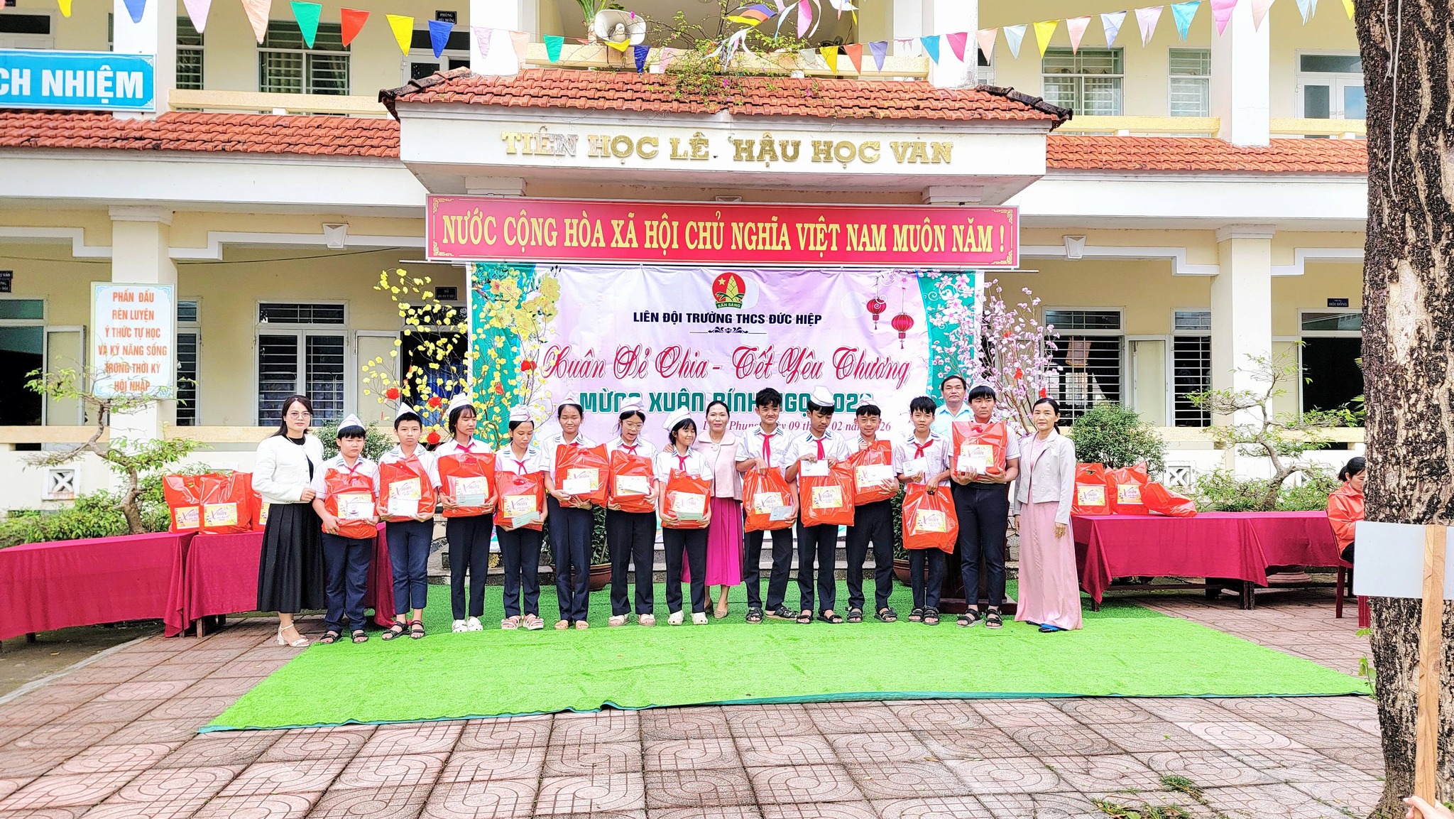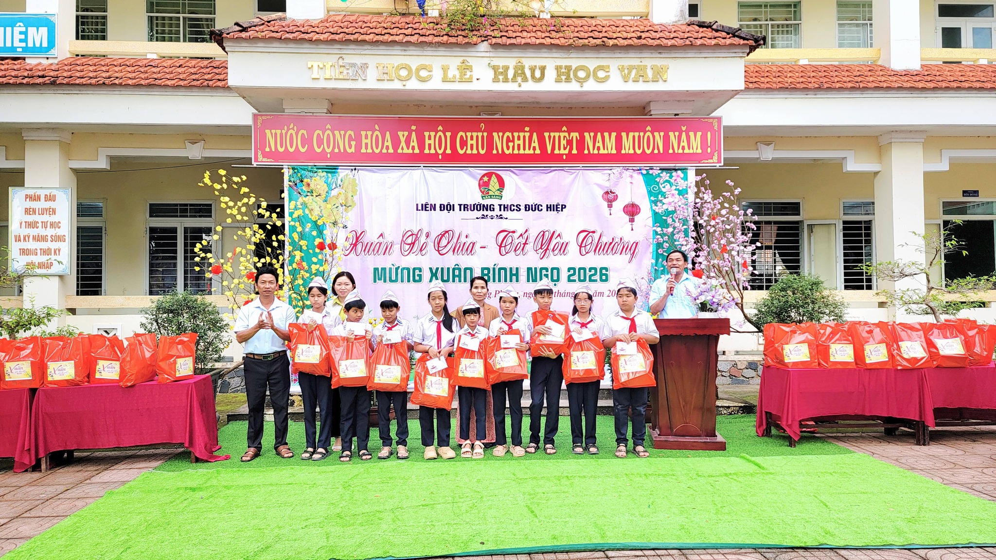 Sáng nay, ngày 09/02/2026 Liên đội Trường THCS Đức Hiệp đã tổ chức chương trình “Xuân sẻ chia – Tết yêu thương 2026” nhằm mang đến niềm vui, sự động viên cho các em học sinh có hoàn cảnh khó khăn trong dịp Tết.